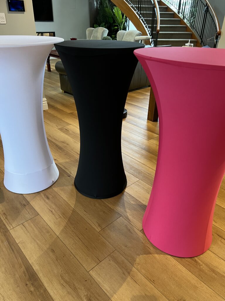 With remote-controlled lighting and a wide range of colour options, they can be styled to suit everything from sleek contemporary events to disco, casino, branded and themed celebrations. Available with or without premium Lycra covers and optional 80cm clear acrylic tops, they can be customised to achieve either a crisp illuminated look or a more elevated, polished finish.