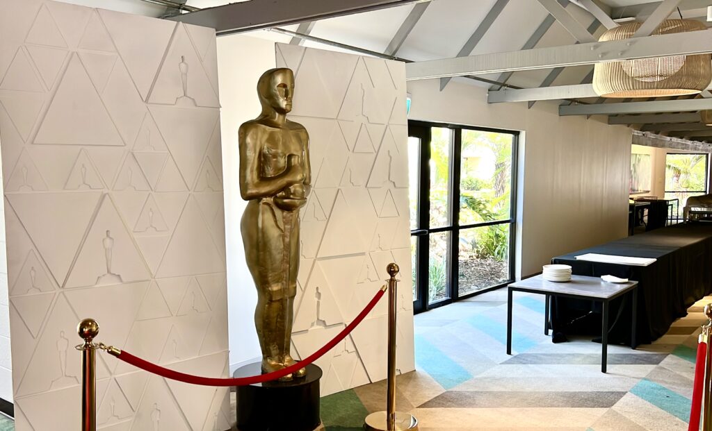 • White Oscar Wall: A sleek and elegant backdrop featuring subtle Oscar-themed designs, perfect for photos or a focal point behind the stage.