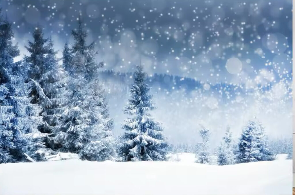 Snow capped trees vinyl backdrop